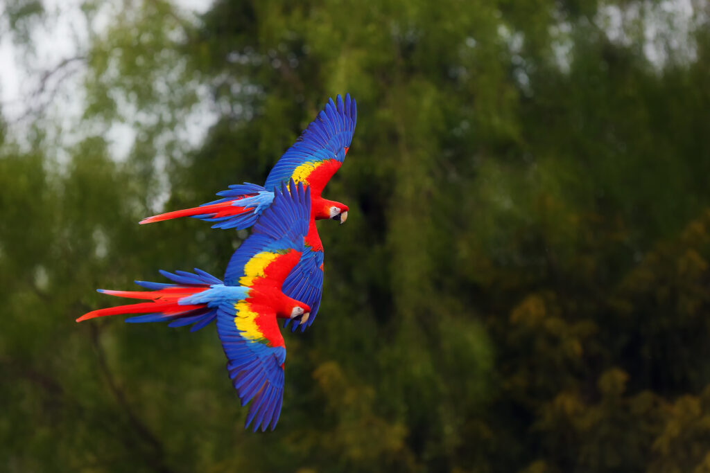 To see a pair of Scarlet Macaws flying together over the rainforest is to witness both beauty and resilience. Their vibrant coloration may draw the eye, but their partnership is what defines them.